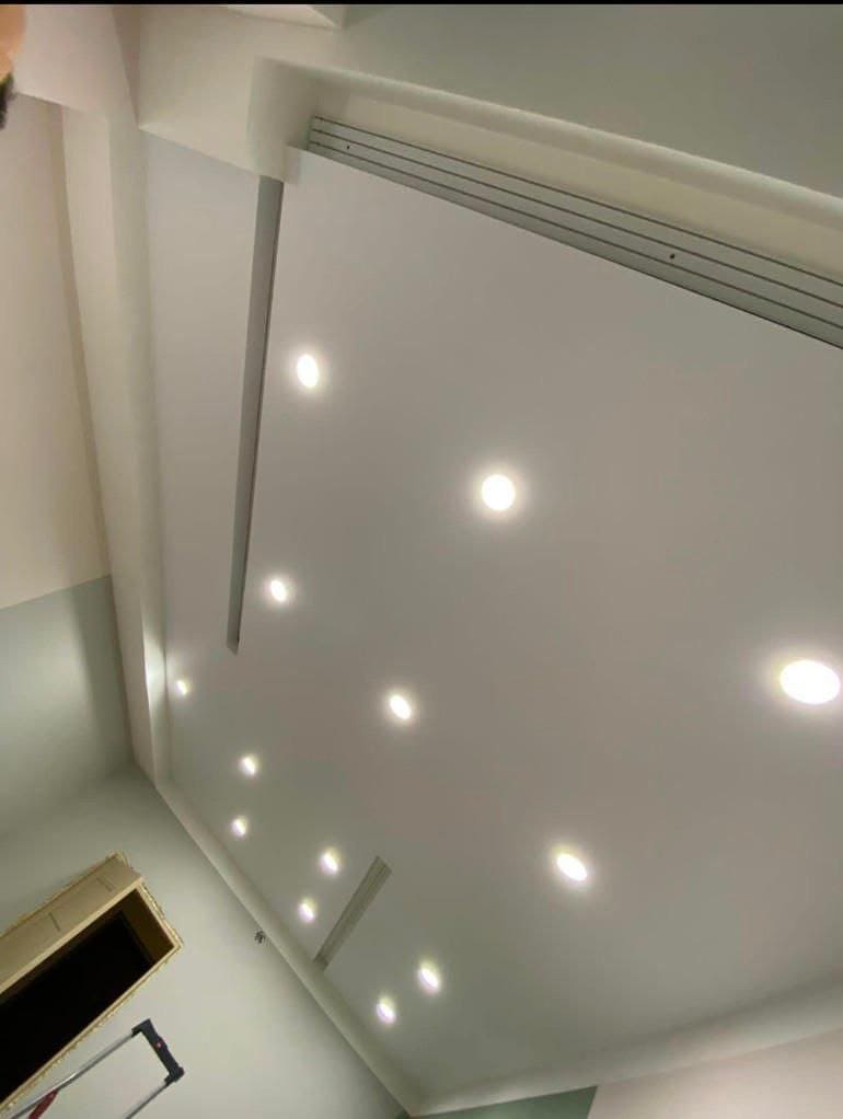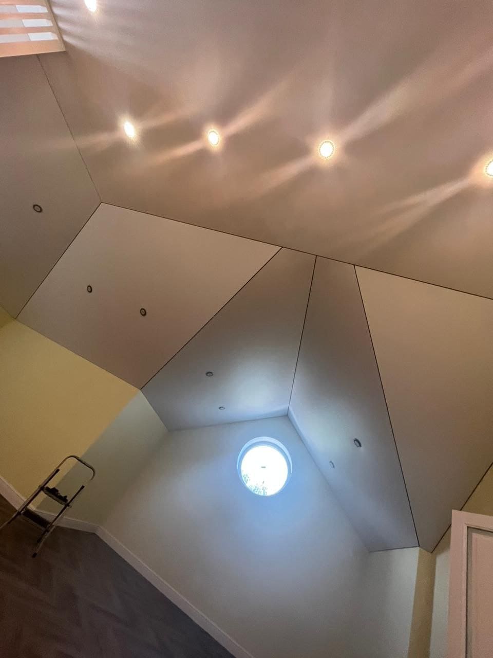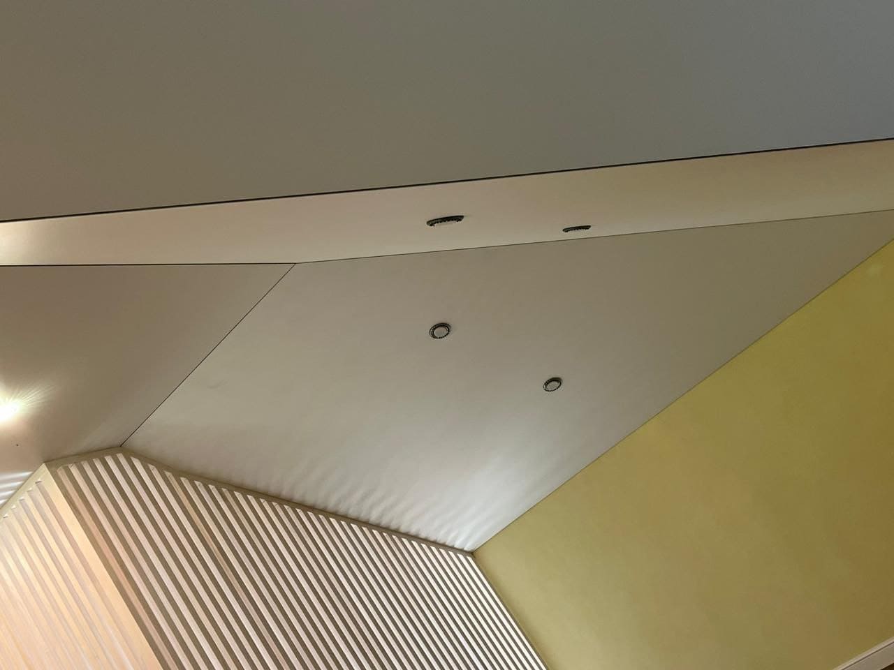 Конструкция из двух ярусов полотна, создающая объемную композицию с возможностью зонирования и встроенной подсветкой